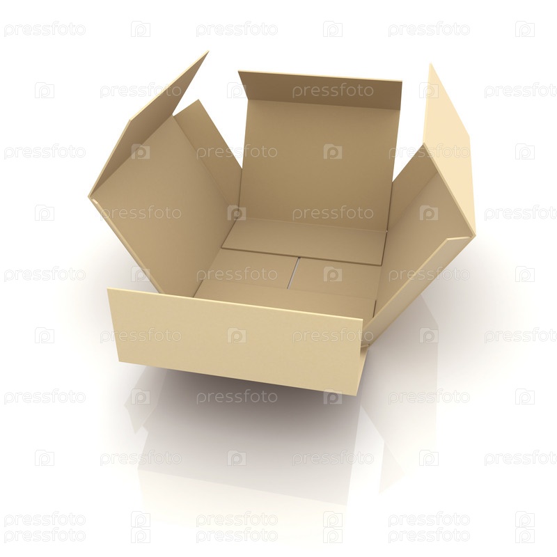 Картонная открытая пустая коробка, изолирована на белом