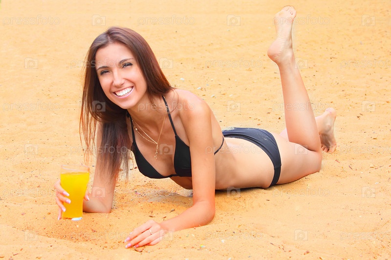Счастливая девушка лежит на песке