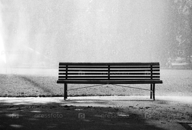 Скамейка в парке. Черный и белый концепции
