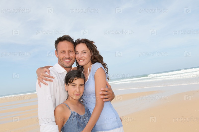 Портрет счастливая семья на пляже