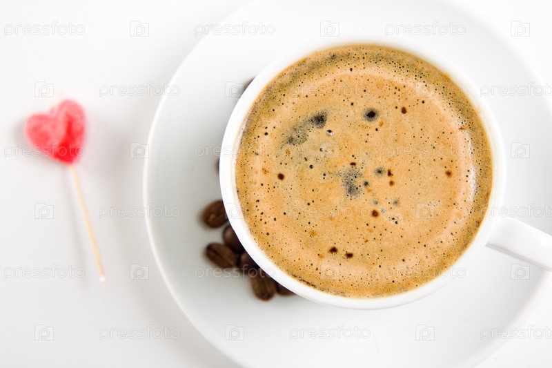 Чашка кофе и леденец в форме сердца