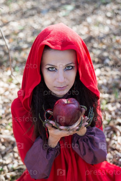 Девушка в красном плаще на лоне природы