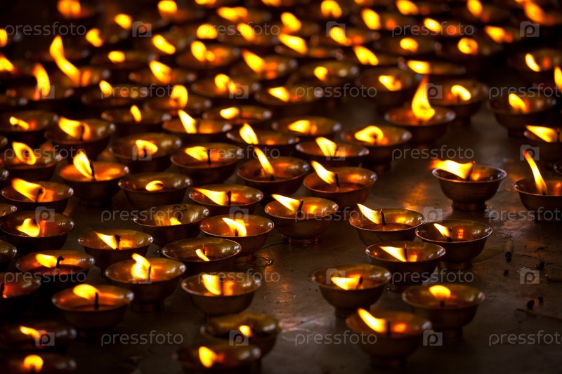 Горящие свечи в буддийском храме