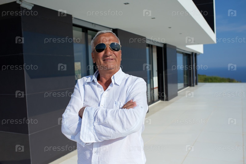 Мужчина напротив современного дома