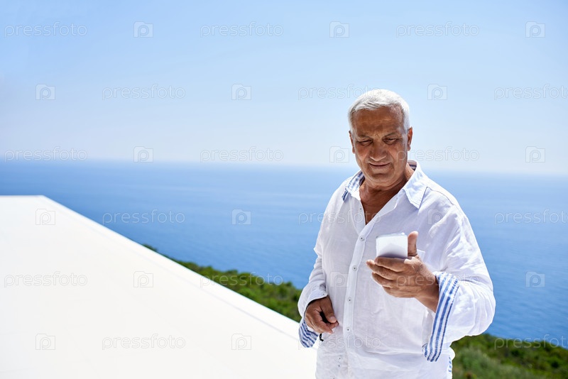 Старший мужчина с помощью смарт-телефон