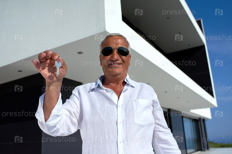 Мужчина напротив современного дома