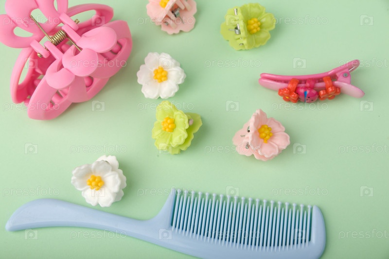 Разноцветные детские заколки и расческа