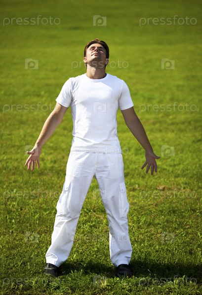 Молодой человек наслаждаясь хорошей погодой