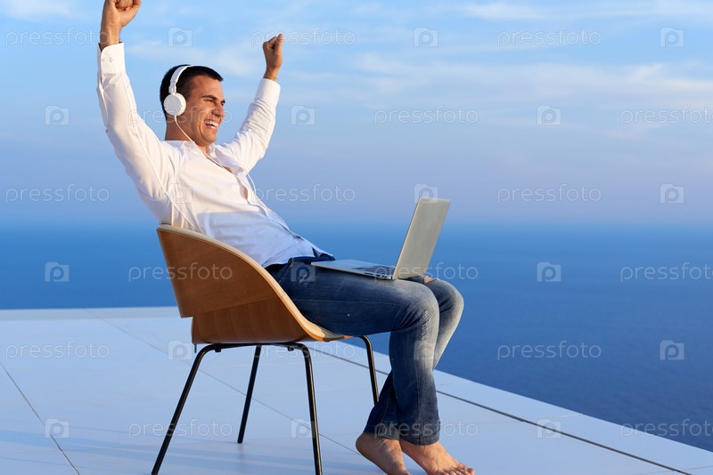 Расслабленной молодого человека у себя дома на балконе