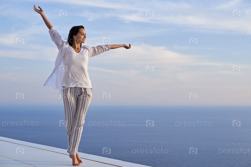 Молодая женщина наслаждаться закатом