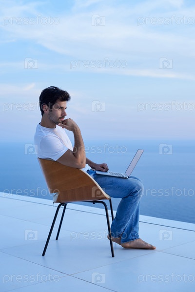 Расслабленной молодого человека у себя дома на балконе
