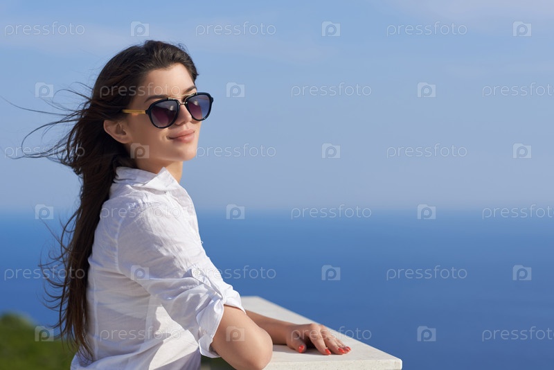 Расслабленной женщина перед современного дома