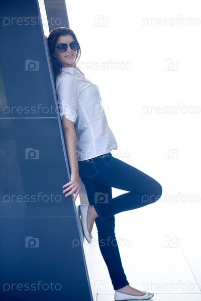 Расслабленной женщина перед современного дома