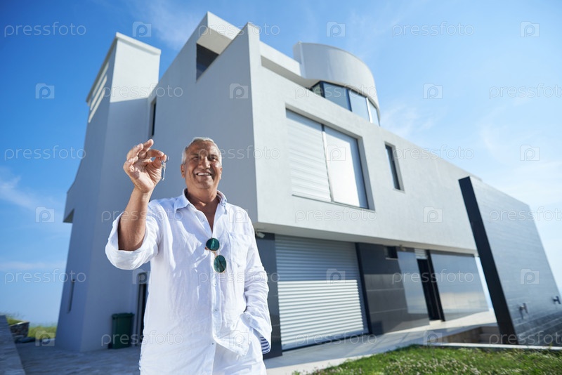 Мужчина напротив современного дома