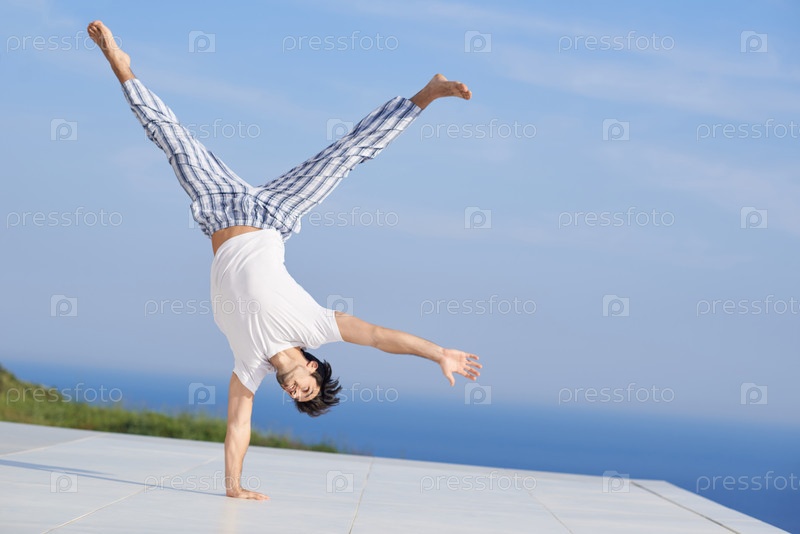 Молодой человек, практикующих йогу