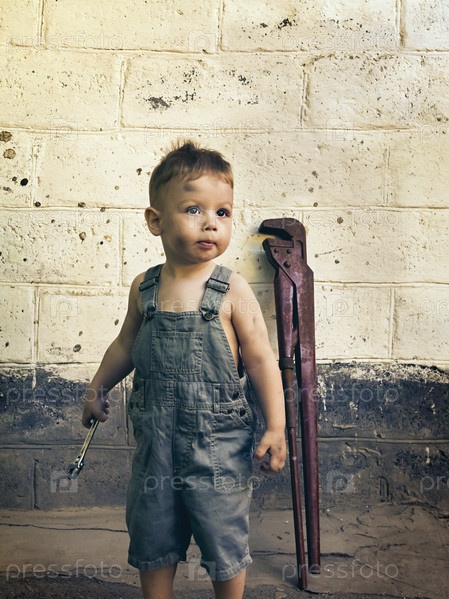 Маленький мальчик с ключ стоит