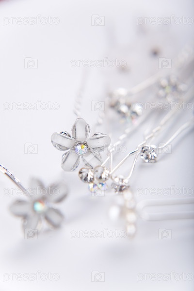 Свадебные шпильки для волос на белом фоне
