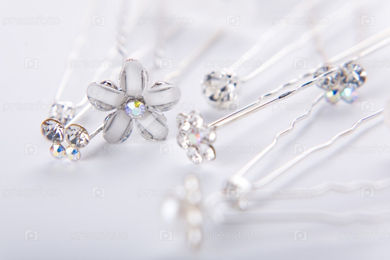 Свадебные шпильки для волос на белом фоне