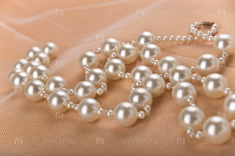Ожерелье с большими жемчужинами на бежевом фоне