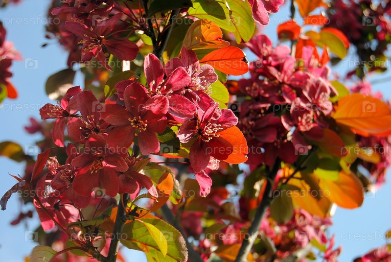 Розовые цветы фруктового дерева на фоне неба