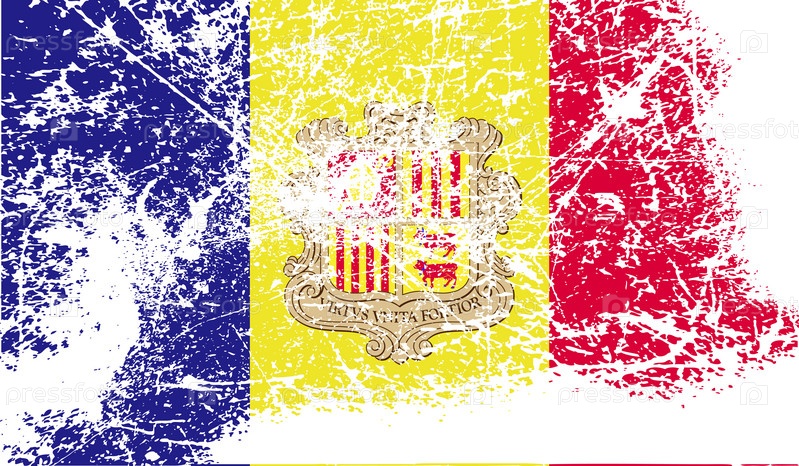 Флаг Андорры с старой текстуре. Вектор