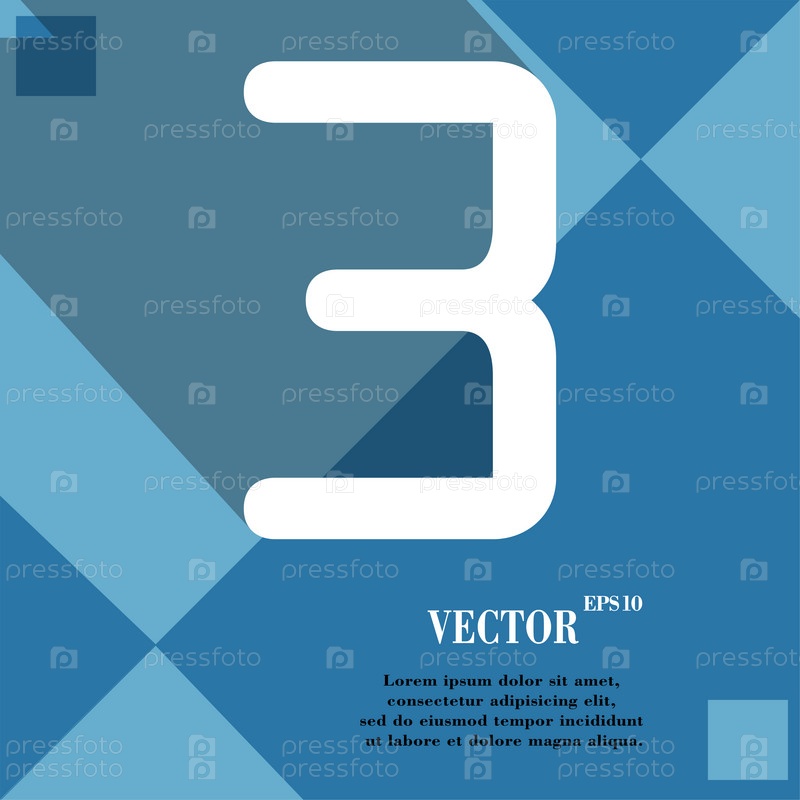 Номер три значок символ на синем фоне абстрактные геометрические с длинными тенями. Вектор