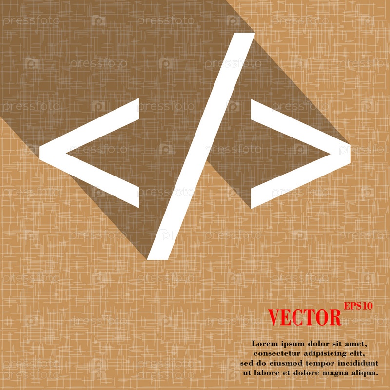 Программирование кода значок символ на абстрактных геометрических фон с длинными тенями. Вектор