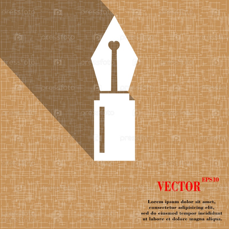 Перо значок символ на абстрактных геометрических фон с длинными тенями. Вектор