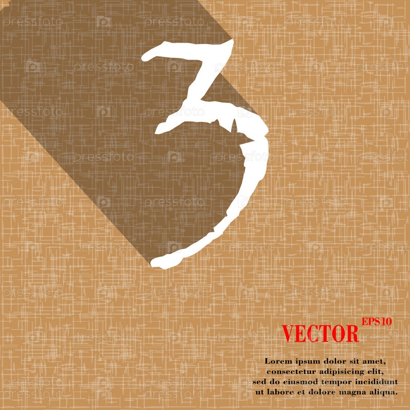 Номер три значок символ на абстрактных геометрических фон с длинными тенями. Вектор
