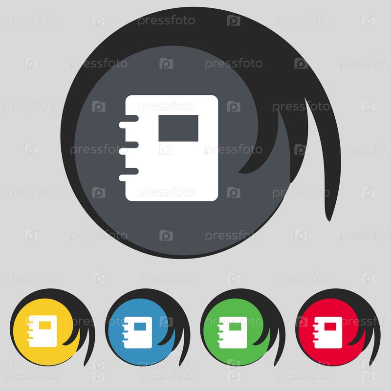 Книга значок знак. Символ на пять цветных кнопок. Вектор