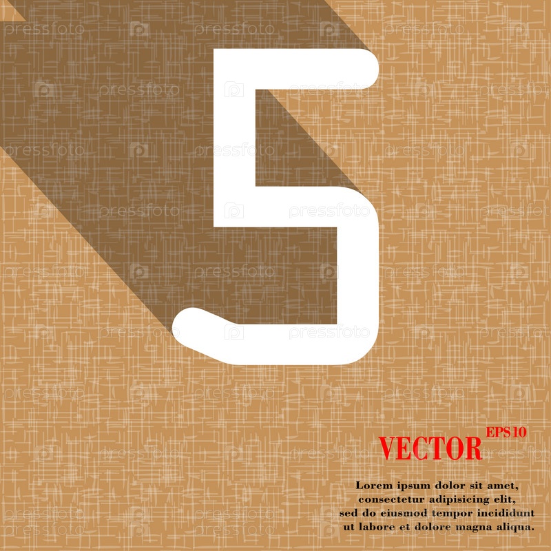 Номер пять значок символ на абстрактных геометрических фон с длинными тенями. Вектор