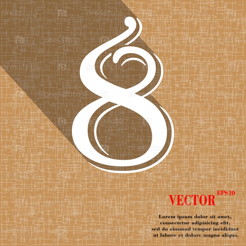 Номер восемь значок символ на абстрактных геометрических фон с длинными тенями. Вектор