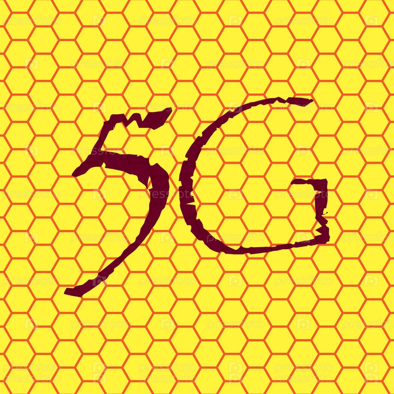 Иконка 5G символ на желтом фоне Аннотация похожа на пчелиные клетки