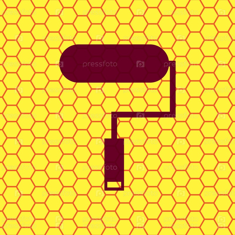 Краской валик значок символ на желтом фоне Аннотация похож на пчелиные соты. Вектор
