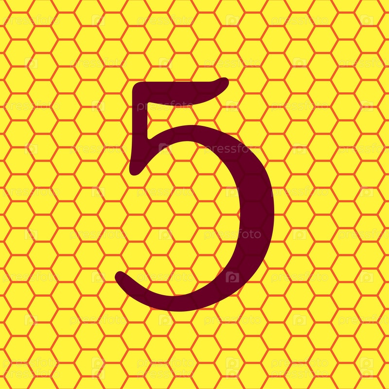 Номер пять значок символ на желтом фоне Аннотация похож на пчелиные соты. Вектор