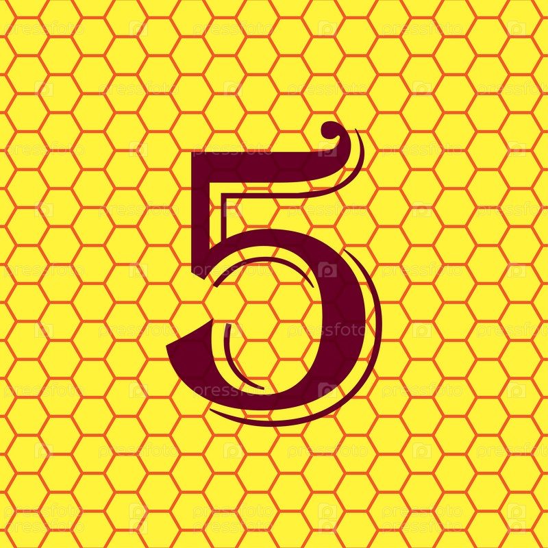 Номер пять значок символ на желтом фоне Аннотация похож на пчелиные соты. Вектор