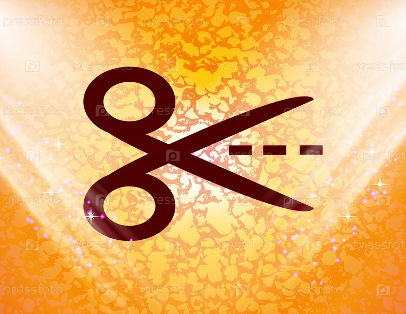Ножницами вырезать штрих пунктирной линии значок символ. Плоский оранжевый современных веб-дизайна с пространства для текста. Вектор