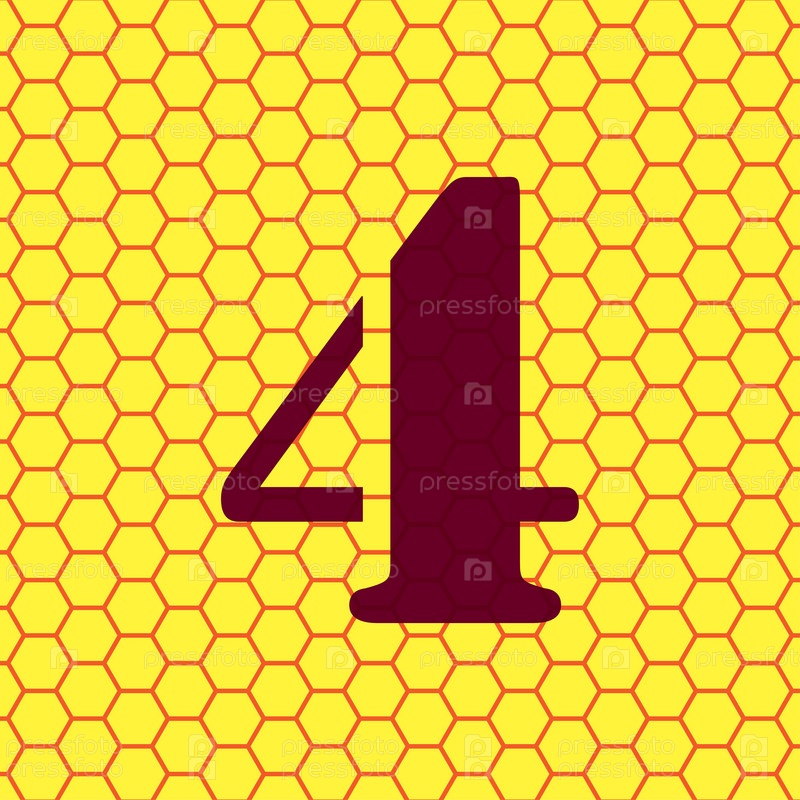 Номер четыре значок символ на желтом фоне Аннотация похож на пчелиные соты. Вектор