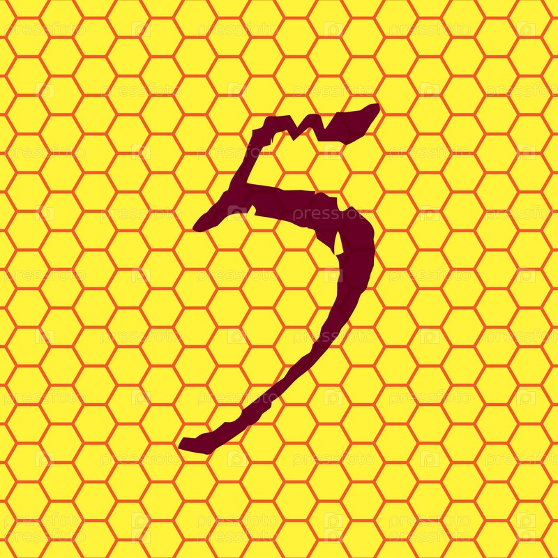 Номер пять значок символ на желтом фоне Аннотация похож на пчелиные соты. Вектор