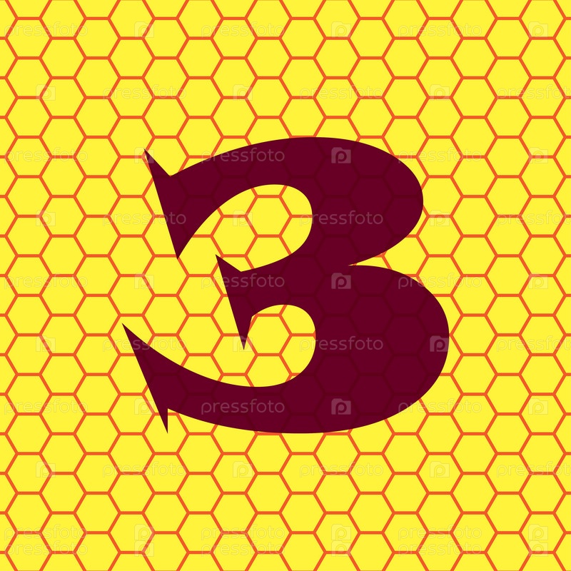 Номер три значок символ на желтом фоне Аннотация похож на пчелиные соты. Вектор