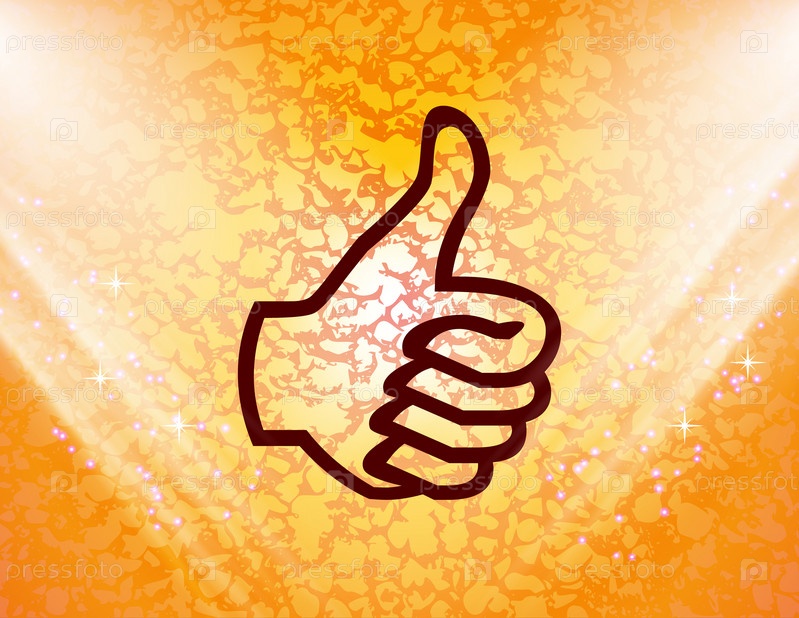 Большой палец вверх значок символа. Плоский оранжевый современных веб-дизайна с пространства для текста. Вектор