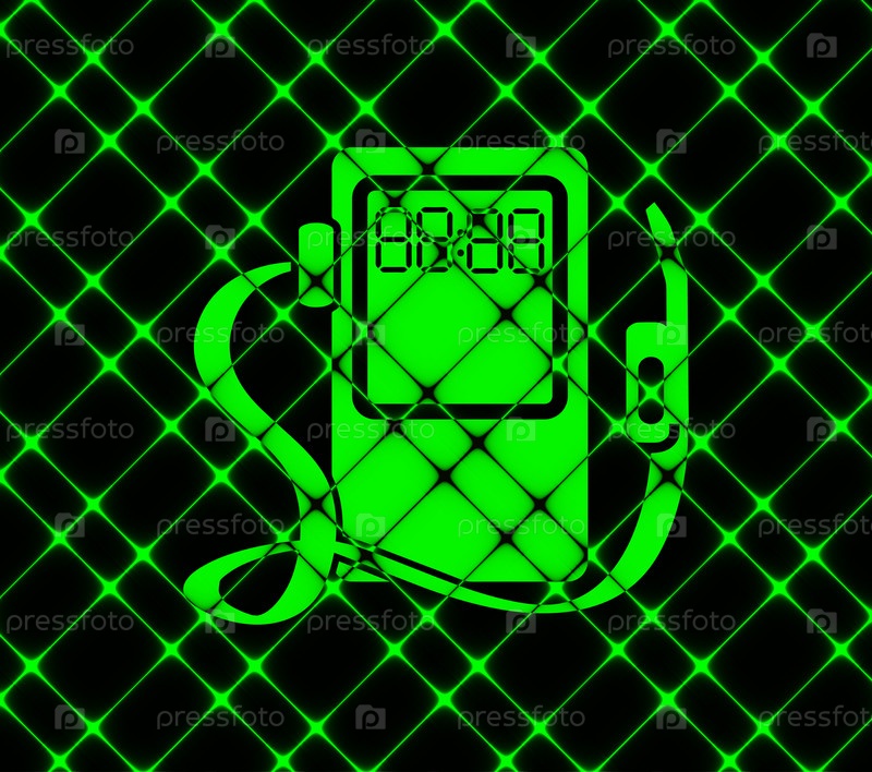 Газ, топливо станция значок символа. На фоне неон зеленый. Вектор
