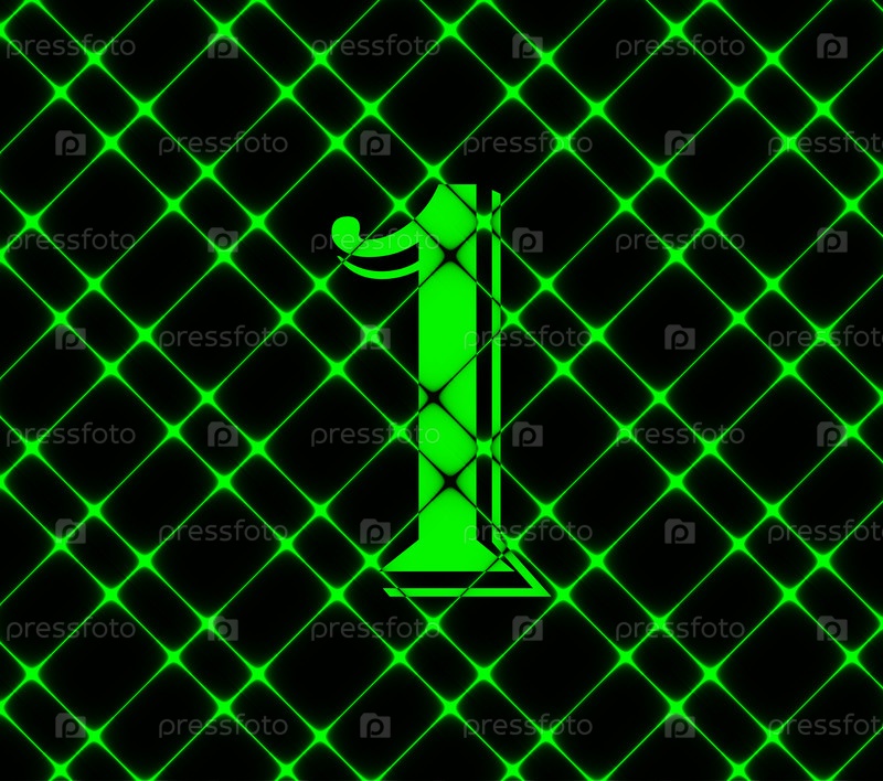 Символом номер один значок. На фоне неон зеленый. Вектор