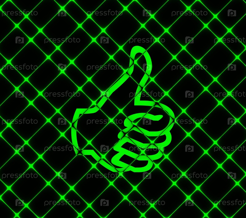 Большой палец вверх значок символа. На фоне неон зеленый. Вектор