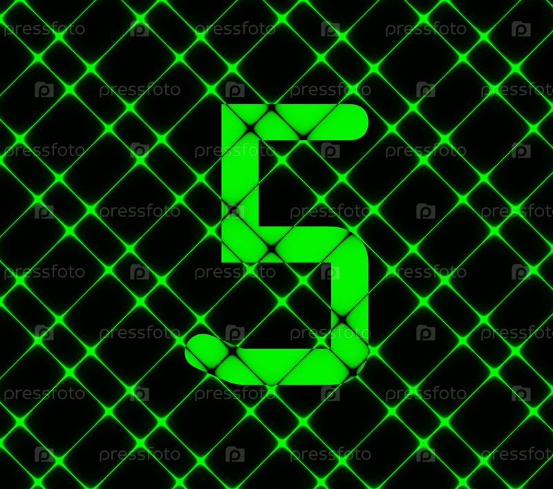 Номер пять значок символа. На фоне неон зеленый. Вектор