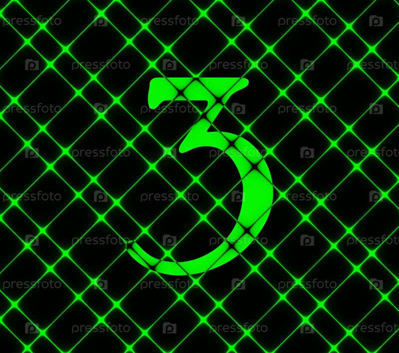 Номер три значок символа. На фоне неон зеленый. Вектор
