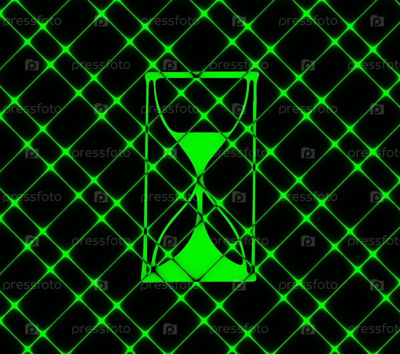 Песочные часы значок символа. На фоне неон зеленый. Вектор
