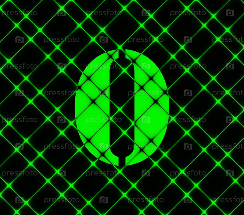 Число ноль значок символа. На фоне неон зеленый. Вектор