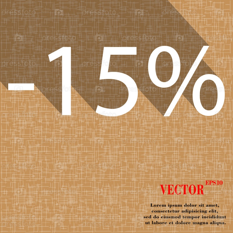 15% скидка значок символ плоской современных веб-дизайна с длинной тенью и пространства для вашего текста. Вектор