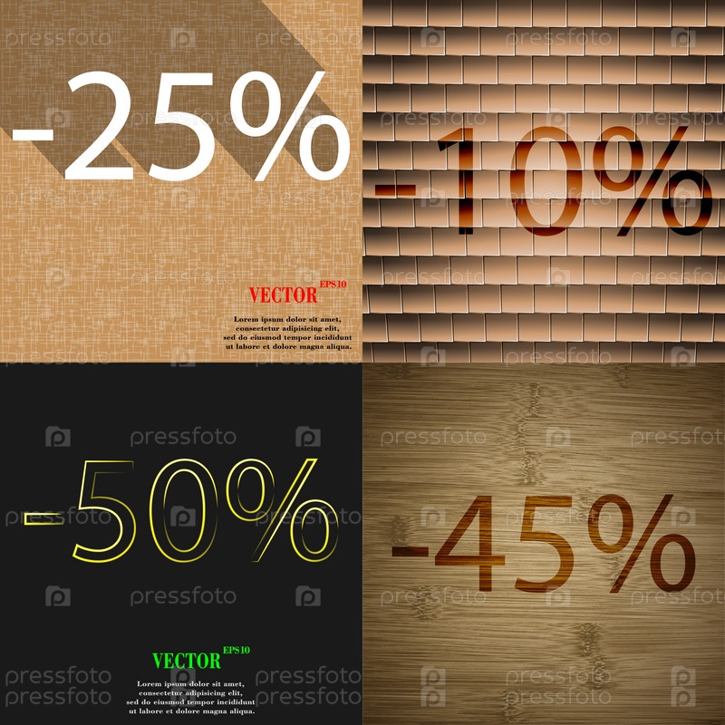 10, 50, 45 значок. Набор процент скидки на Абстрактные фоны. Вектор